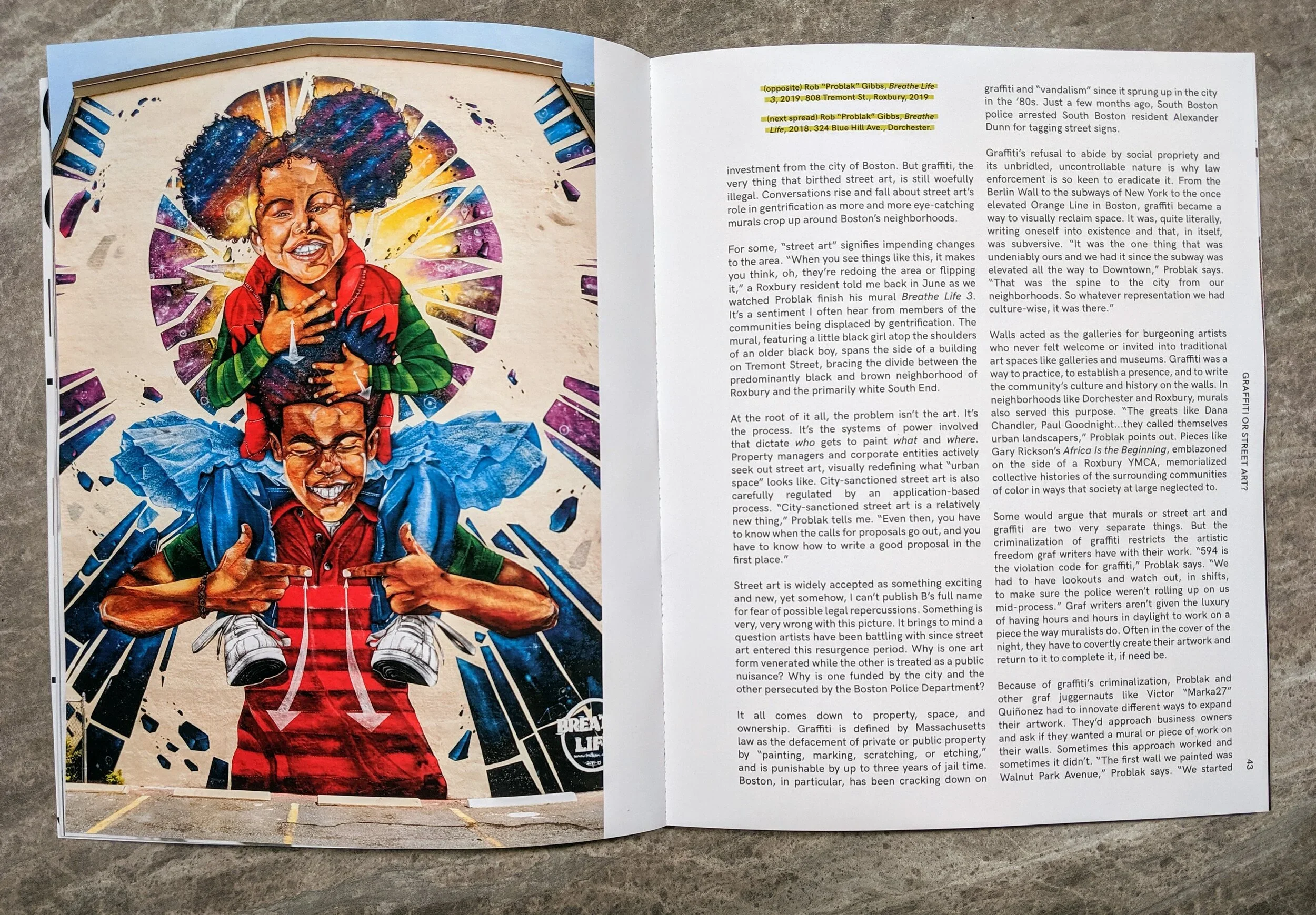 Below is an excerpt from Graffiti or Street Art? published in Boston Art Review: Issue 04, The Public Art Issue. The piece was written by Arielle Gray, with financial support from Now + There.