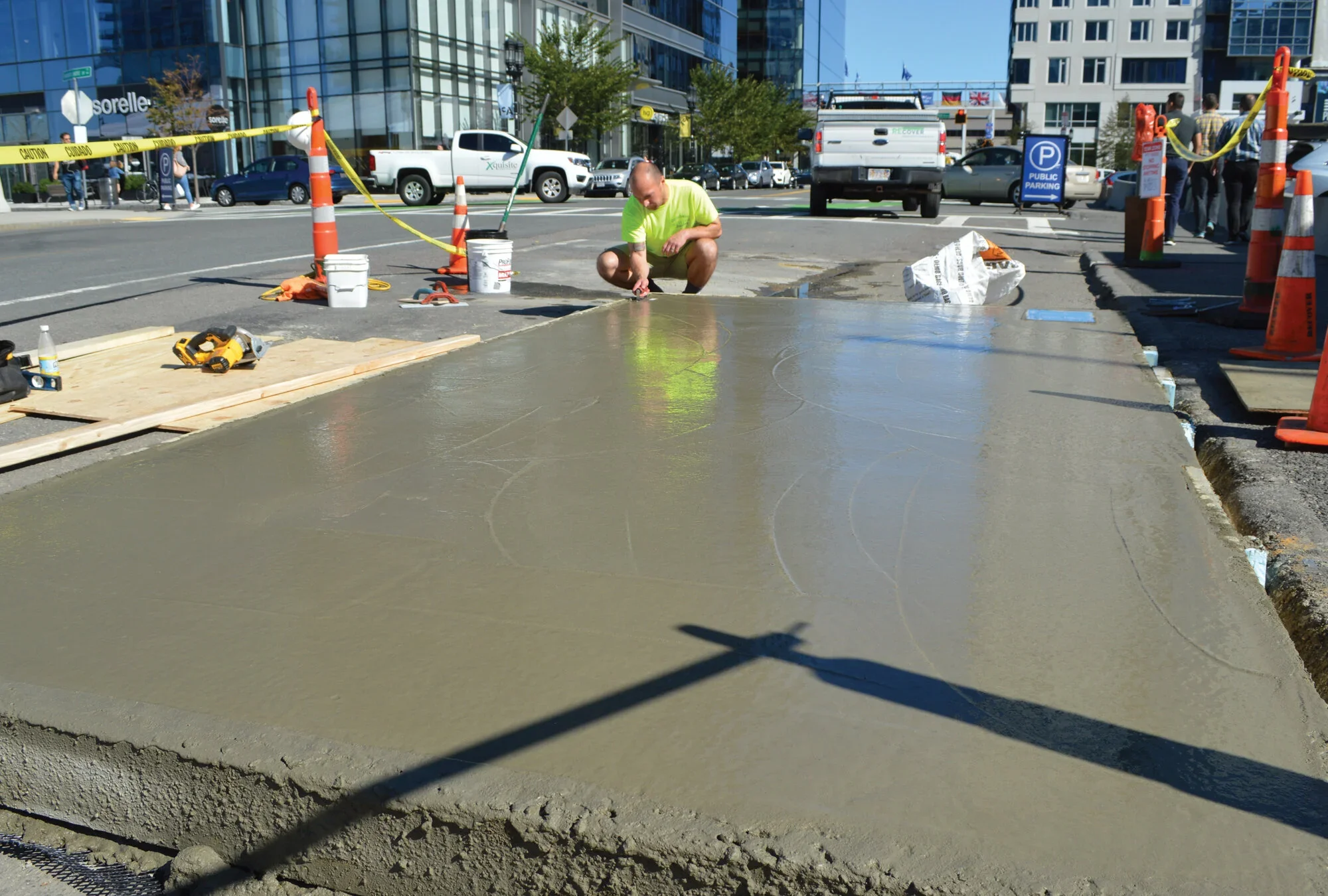 On the first day, we assembled the base for the concrete in the parking spot, pouring it, leveling it and letting it dry for 48 hours.