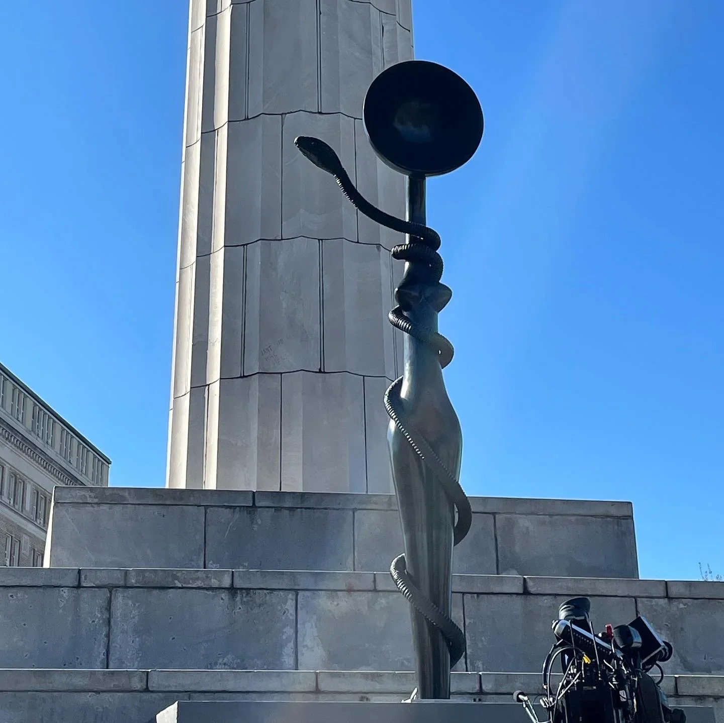 The morning of Saturday, January 22, 2022, the unveiling of Simone Leigh’s Sentinel (Mami Wata) offered the sharpest example of these forces at play. Erected at the site where a bronze statue of Robert E. Lee stood from 1884 to May 19, 2017, Nawi and Keith purposefully placed Sentinel (Mami Wata), at the base of the soaring plinth so as to be approachable, a gesture that refuses the hegemony of white supremacy and its physical manifestation in elevated monuments like the Lee that previously lorded over downtown New Orleans.