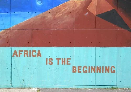 Seeing Africa Is the Beginning emblazoned on the side of the local YMCA is one of my earliest memories. A painting of a single pyramid resting atop a cube floating in space, this mural conjured images of African history as primordial, with its origin so distant in the past as to be beyond human memory.