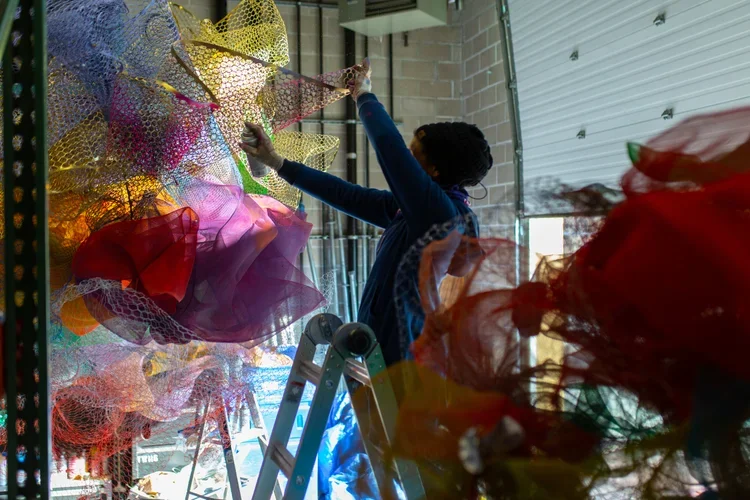 If you’ve been following us on Instagram lately, you may have noticed that we had an out-of-this-world blast making our first project of 2021: Cicely Carew’s Ambrosia, up at Prudential Center through June 30. It’s been only two weeks since we finished installing, but we’re already reminiscing. Here’s our recap of Ambrosia’s journey to Prudential, featuring new behind-the-scenes photos and a social media roundup of our favorite posts (so far).