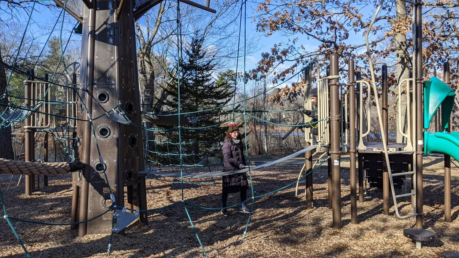 Artist, Sari Carel, on site in Boston recording sound for The Shape of Play, February 2020